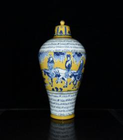 元波斯文青花黄釉人物故事纹梅瓶,