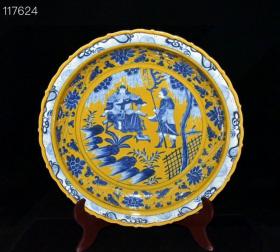 元波斯文黄釉青花人物故事纹盘 2 7.8✘44.5