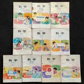 80八十年代九十90年代人教版怀旧老课本:五年制小学课本 数学 1-5年级用 一套10册 82-93年 通用版 全红色印刷 正版不缺页 实物拍摄