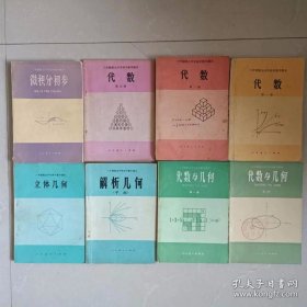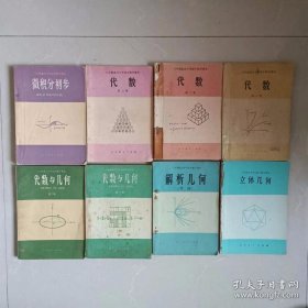 80年代怀旧收藏老课本:老版高中数学教材全套8本人教版 立体几何+解析几何+代数第一二三册+微积分初步+代数与几何第一二册 【81-83年,未使用】