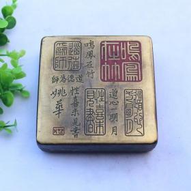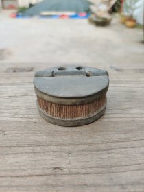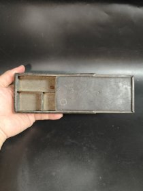 清代锡制笔插墨盒,带款,品相如图所示。盒身厚重规整,带双孔设计,可插毛笔。底部有款识,保存完整。尺寸见图。老物件,包老保真,适合收藏