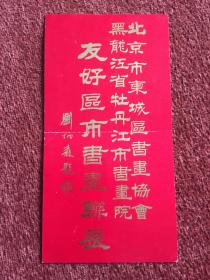 《北京市东城区书画协会黑龙江省牡丹江市书画院友好区市书画联展》1987年请柬,刘炳森题签,正面文字全部烫金