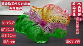 85_顶级龙石种多彩翡翠荷叶摆件,水头超好,超级完美