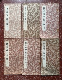 少有港版70年代早期小楷等碑帖6种合售:按照朵云轩版本印刷【王羲之小楷字帖】【赵孟頫小楷字帖】等6本合售、封底面见图、个别钉口有锈(见图)内页无写画、实物拍照、8一85品,个别近九品足。