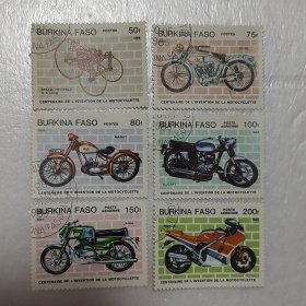 外国邮票 销票 布基纳法索 摩托车发明百年纪念:蒸汽三轮车 G. A. 龙;POPE 教皇;MANET;杜卡迪;爪哇;本田。6枚 1985年