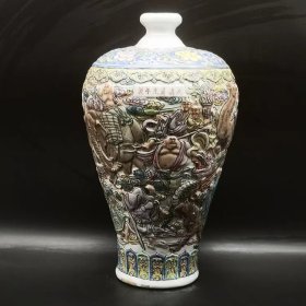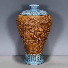 捡漏瓷器古玩古董旧货收藏大清乾隆年制黄釉浮雕十二生肖祝寿图梅瓶