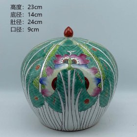 晚清古彩百财纹盖罐茶叶储物罐旧货老货老陶瓷收藏摆件