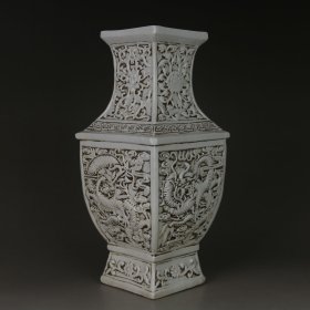 捡漏!古玩店倒闭库存精品瓷器!民国王炳荣雕刻四方瓶旧货老货真品老陶瓷器民间古董收藏博古摆件