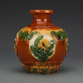 唐三彩雕刻石榴瓶古董古玩收藏品摆件老物件保真老货旧货瓷器