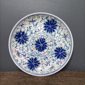 古玩古董回流老瓷器清代光绪年制青花斗彩缠枝纹瓷盘老货旧货收藏