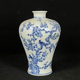 加拿大回流精品瓷器康熙款青花喜上梅梢梅瓶瓷器老货旧货收藏家居摆件