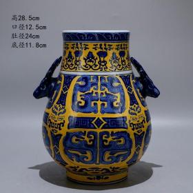 【特价捡漏 】大清乾隆年制青花黄地夔龙纹鹿头尊花瓶摆件旧货老货老物件收藏