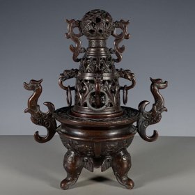大清乾隆九龙双耳三象足熏香炉全品古玩老物件旧货收藏紫铜摆件