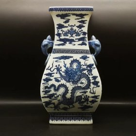 清乾隆青花龙纹双耳扁瓶古玩古董老货旧货老物件收藏品古典风摆件