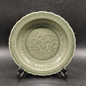 捡漏稀有珍藏!南宋龙泉官窑暗刻釉下龙纹盘瓷器盘旧货老货真品收藏老瓷器