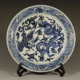捡漏!古玩店不干了低价处理库存精品瓷器摆件!明宣德手绘青花龙凤纹赏盘平盘古瓷旧货老瓷器古董收藏博古架摆设