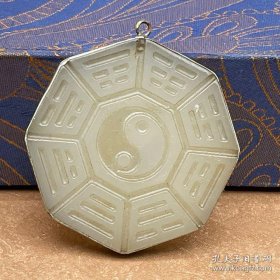 旧货古玩收藏品民间回流银镶嵌新疆白玉镂空牌子挂件吊坠八卦