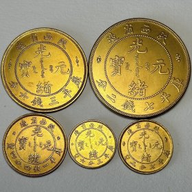 捡漏!古玩店不干了低价处理库存整套五枚真银元福建官局造光绪元宝套装鎏金币真金币农村旧货收藏