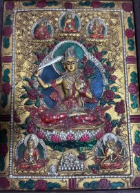时期古董收藏 西藏老唐卡墙壁画 旧藏木框佛像装饰画老货旧货