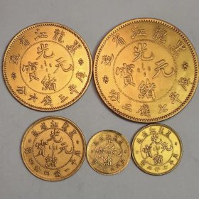 捡漏!稀有东三省鎏金银元古董银元东三省造光绪元宝套装鎏金币真金币农村旧货收藏特价