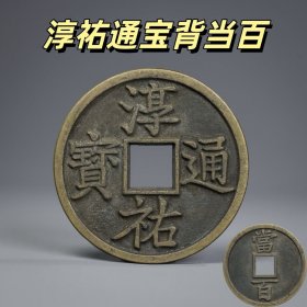 乡下旧货收藏老铜钱淳祐通宝当百深坑绿锈消音钱南宋名誉品鉴赏