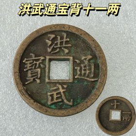 古钱币洪武通宝背十一两方孔铜币古钱币古铜币收藏古玩旧货