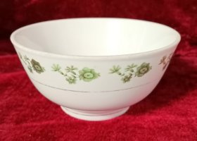 广东电白绿翠小花陶瓷碗。收藏品旧货老货。外直径11.8厘米,高度5.6厘米。有底款:中国电白, MADE IN CHINA。