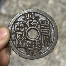 古玩旧货老铜钱清代此符压怪背天官赐福黑漆花钱厌胜钱老物件收藏