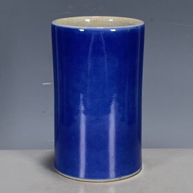 古董瓷器老货旧货收藏 清代单色釉带开片霁蓝釉笔筒文房摆件