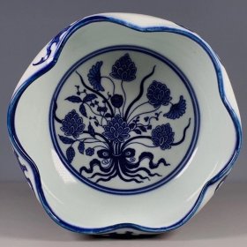 清乾隆年制青花手绘五福一束莲花口笔洗文房器全品 古玩收藏旧货