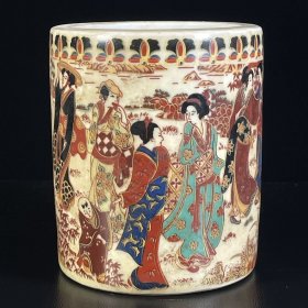 古玩旧货瓷器装饰品仿古摆件收藏 五彩仕女图笔筒
