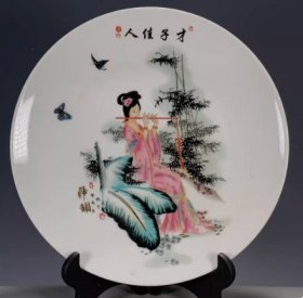 古玩古董瓷器旧货收藏 海外回流大清乾隆年制粉彩才子佳人赏盘才子佳人