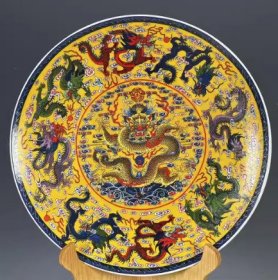 古玩旧货收藏品 海外回流大清乾隆年制五彩九龙纹赏盘瓷器