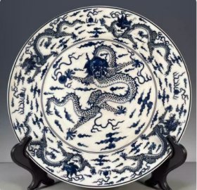 海外回流大清乾隆年制青花龙纹赏盘 古董旧货瓷器老货收藏九龙