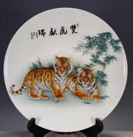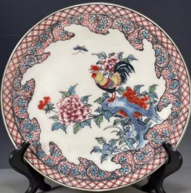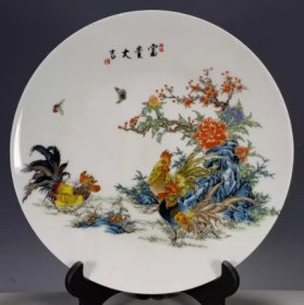 大清乾隆青花斗彩公鸡盘瓷器家居装饰摆件古玩收藏老货旧货