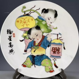 大清乾隆年制招财童子纹赏盘 古玩瓷器古董旧货收藏品福星高照665