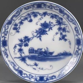 古董旧货瓷器老货收藏 大清乾隆年制青花鸳鸯戏水图赏盘