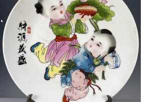 大清乾隆年制招财童子纹赏盘 古玩瓷器古董旧货收藏品风调雨顺332