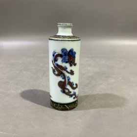 清代青花釉里红龙纹鼻咽壶,手绘柴窑老货,旧货收藏,完整品
