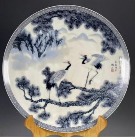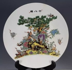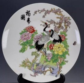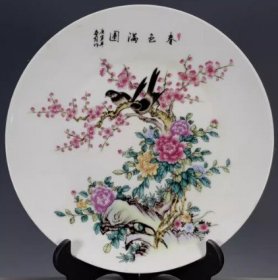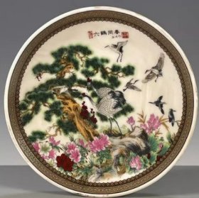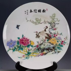 海外回流大清乾隆年制粉彩松鹤迎春赏盘 古董旧货瓷器老货收藏4353
