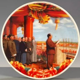 古玩古董瓷器旧货老物件收藏 粉彩开国大典图纹赏盘