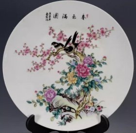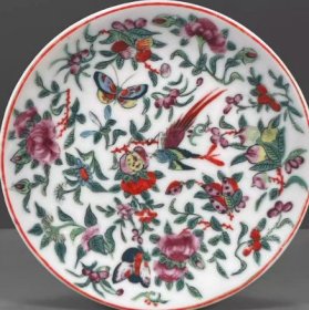 古董旧货瓷器老货收藏 大清乾隆年制五彩花鸟图纹赏盘