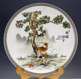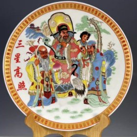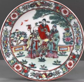 古董旧货瓷器老货收藏 大清乾隆年制五彩福禄寿赏盘