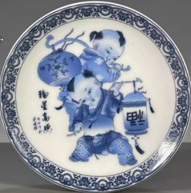 古董旧货瓷器老货收藏 大清乾隆年制青花童趣纹赏盘福星高照