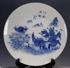 墨彩山水图纹小赏盘 古玩古董瓷器旧货老物件收藏5353