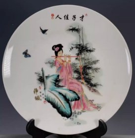 古玩古董瓷器旧货收藏 海外回流大清乾隆年制粉彩才子佳人赏盘32424