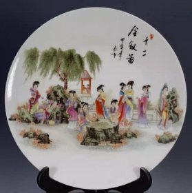海外回流大清乾隆年制粉彩十二金钗图赏盘 古董旧货瓷器老货收藏3424