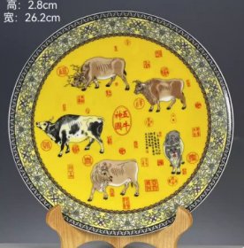 海外回流大清乾隆年制粉彩五牛图纹赏盘 瓷器古董旧货收藏5222
