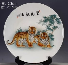 海外回流大清乾隆年制粉彩赏盘 古玩瓷器古董旧货收藏品45353虎