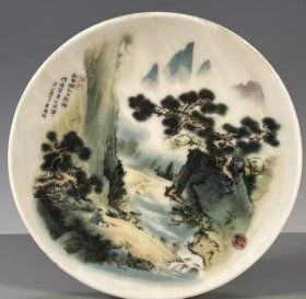 墨彩山水图纹小赏盘 古玩古董瓷器旧货老物件收藏353